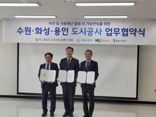 [금요저널] 화성도시공사는 전국 최초로 수원·용인도시공사와 함께 ‘재난안전협의체 업무협약’을 체결했다고 8일 밝혔다.