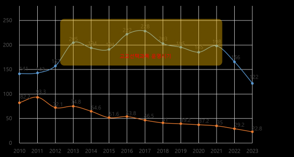 특히 세무직 지원자의 경우 ’12년 9,713명에서 고교선택과목제가 도입된 ’13년에는 2만 5,625명으로 1만 5,912명 증가한 반면 제도가 폐지된 ’22년에는 1만 956명으로 전년 대비 8,733명 감소했다.