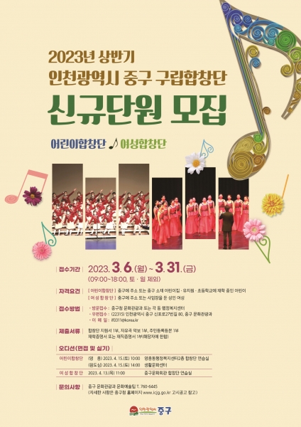 인천 중구 구립합창단 “음악적 재능 펼칠 신규단원을 찾습니다”