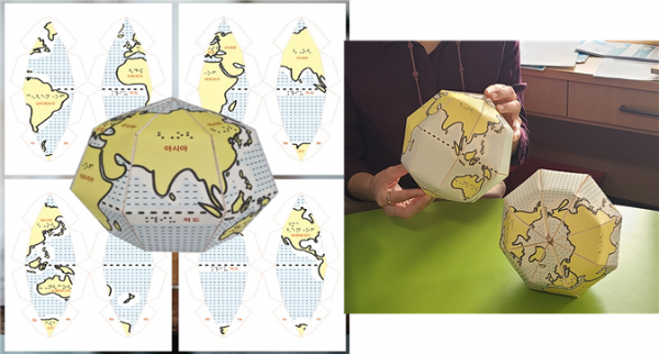 이번에 배포하는 종이점자지구본은 시각장애 학생들이 지구본 만들기 체험을 통해 지구촌에 대한 호기심과 상상력을 키워가고 재미와 성취감을 맛볼 수 있도록 종이 도면 형태로 제작됐다.