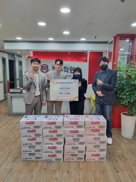 최정민 정수학원장은 “돌봄이 필요한 주변의 이웃들에게 조금이나마 도움이 되고자 기부에 참여하게 됐다”며 “이번 기부를 통해 어려운 이웃을 생각하는 아이들의 따뜻한 마음이 잘 전달되길 바란다”고 말했다.