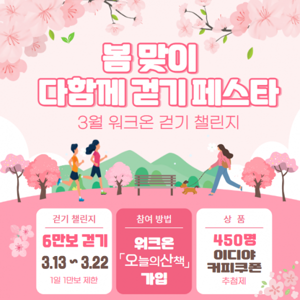 봄을 맞이하는 3월에는 친구 초대 이벤트를 진행 중이며 오는 13일~22일까지는 6만보 걷기 챌린지를 진행한다.