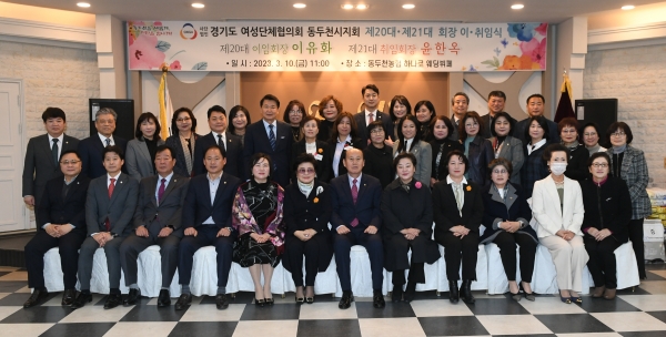 [금요저널] 경기도여성단체협의회 동두천시지회는 지난 10일 오전 동두천농협 하나로웨딩부페에서 제20대 이유화 이임회장, 21대 윤한옥 취임회장의 이·취임식을 개최했다.