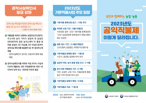 직불금 신청은 2월까지는 비대면, 3월부터 4월까지는 대면접수 기간으로 나눠 진행한다.