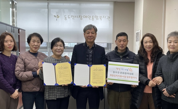[금요저널] 동두천시장애인종합복지관은 지난 15일 동두천시문화원여성회와 계절김치 지원사업을 진행하기 위해 업무협약을 체결했다.