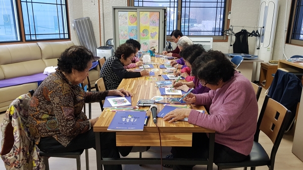 강사들은 경로당에서 주 1~2회 미술 음악 인지 놀이 등 다양한 인지 활동과 소근육 운동 치매 예방 체조 등을 알려드리며 경로당 이용 어르신들의 치매 예방 활동을 지원한다.