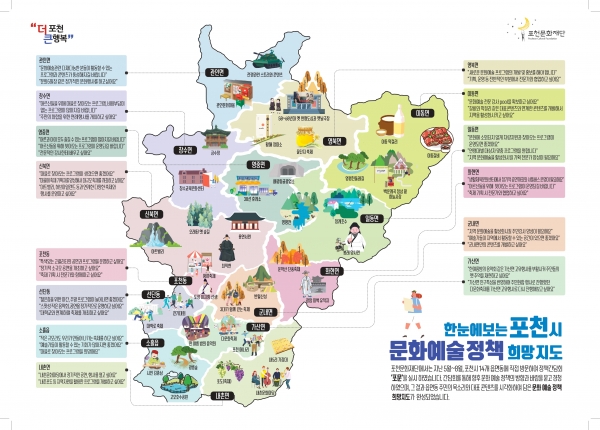 포천문화재단은 2022년 14개 읍면동 순회 간담회 ‘포문’ 결과를 바탕으로 제작한 ‘포천시 문화예술 정책 희망지도’를 포천시민이 주체가 되어 실현하는 내용을 골자로 한 ‘포문 2.0 – 이루어질지도’ 사업으로 응모해 선정됐다.