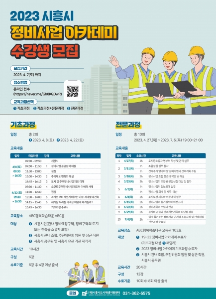 기초입문과정은 정비사업에 대한 기초적이고 개념적인 내용을 토대로 진행되며 교육 대상자는 관내 정비예정구역 및 정비구역 토지 또는 건축물 소유자를 포함한 시흥시민, 시흥시 조합·추진위원회 임원 및 상근 직원, 시흥시 공무원 및 유관 기관 재직자다.