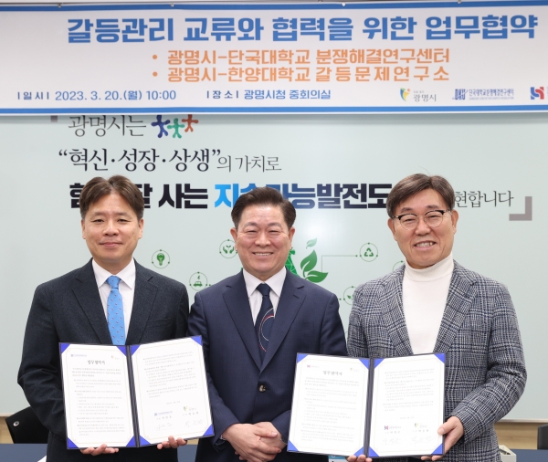 광명시와 업무협약을 맺은 양 기관은 갈등 관련 예방·관리·해결에 관한 연구 및 자문, 전문 인력 양성 등을 수행하는 갈등관리 전문기관으로 국무조정실로부터 갈등관리연구기관으로 지정 받은 바 있다.