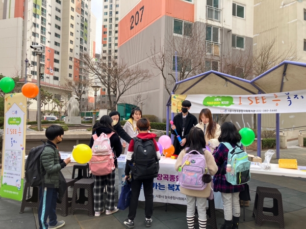 둘째 날은 장곡동 숲속마을 1단지 아파트 내에서 아동, 청소년, 지역주민과 함께하는 복지관의 다양한 기능과 역할을 탐색하고 복지관 위치를 알아보는 활동 캠페인을 통해 시흥시만의 복지의 색깔이 있음을 보여주는 ‘I SEE 흥 복지’와 시흥시장곡종합사회복지관을 홍보하고 소개하는 자리를 마련했다.