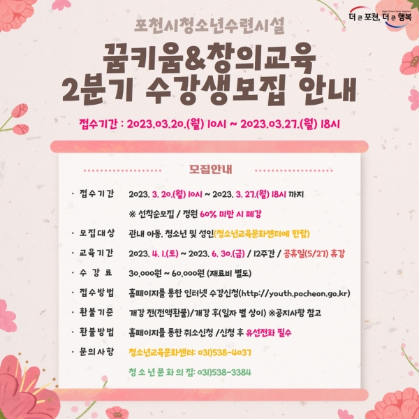 포천시 청소년수련시설, 2023년 2분기 꿈키움·창의교육 프로그램 수강생 모집