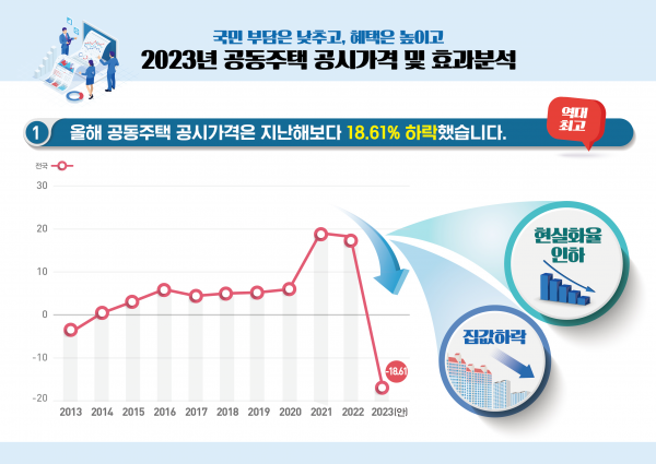 '23년 공시가격은 '22년 대비 전국 평균 18.61% 하락했다.