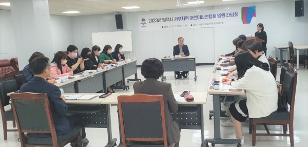 [금요저널] 평택시 안중출장소는 지난 23일 서평택체육센터 2층 회의실에서 평택시 어린이집연합회 서부지역 임원 16명과 어린이집 보육환경 활성화 방안을 모색하기 위한 소통 간담회를 실시했다.