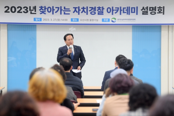 [금요저널] 오산시와 경기남부자치경찰위원회는 지난 27일 시청 물향기실에서 자치경찰제의 관심있는 주민들을 대상으로 ‘찾아가는 자치경찰 아카데미’를 개최했다고 밝혔다.