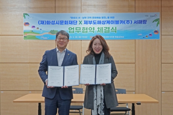 [금요저널] 화성시문화재단은 화성시 서·남부지역 문화예술 발전을 위해 제부도해상케이블카㈜ 서해랑과의 업무협약을 체결했다고 28일 밝혔다.