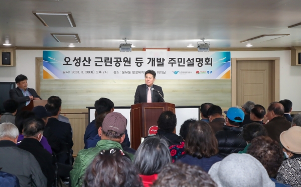 설명회는 오성산 근린공원 개발 방향을 설명하고 주민 의견을 청취하고자 인천국제공항공사가 마련한 자리로 공원 진입도로 조성 추진 경과 및 향후 계획 설명, 잔여 부지 타 용도 개발 관련 진행 절차 안내, 질의응답 순으로 진행됐다.