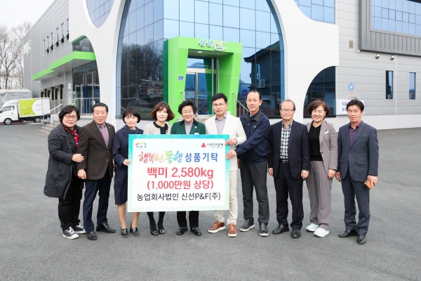 [금요저널] 농업회사법인 신선피엔에프에서 이천시의 어려운 이웃들을 위해 백미 10kg 303포를 이천시 이웃돕기사업 행복한 동행에 기탁해왔다.