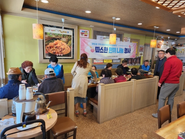 [금요저널] 광명시 광명3동 저소득 어르신 10명에게 ‘김미진 당진 아구 코다리 찜·탕’에서 지난 29일 점심 식사를 대접했다.