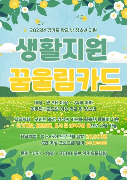 [금요저널] 동두천시학교밖청소년지원센터는 4월부터 학교 밖 청소년의 건강한 성장을 돕고 다양한 사회적 활동을 지원하기 위해 생활지원을 운영한다고 밝혔다.