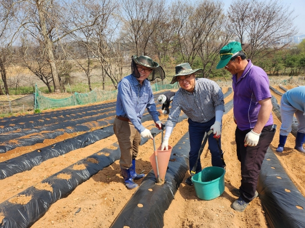 이날 봉사활동에는 남촌동 새마을지도자협의회를 비롯해 오산시새마을회, 남촌동새마을부녀회 회원들이 참여해 밭을 갈고 감자를 하나하나 정성스럽게 심었다.