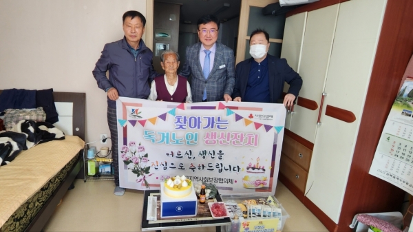 정성스럽게 준비한 생신선물과 케익 등을 협의체 위원이 대상자 가정으로 직접 찾아가서 생신을 축하하는 시간을 가졌으며 잔치의 주인공들이신 노인분들을 행복한 추억의 선물을 갖게 된 것 같다고 고마운 마음을 전했다.