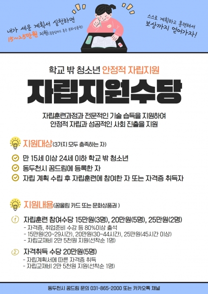 [금요저널] 동두천시학교밖청소년지원센터는 학교 밖 청소년의 성공적인 사회 진출과 안정적인 자립을 위해 자립지원수당을 지원한다.
