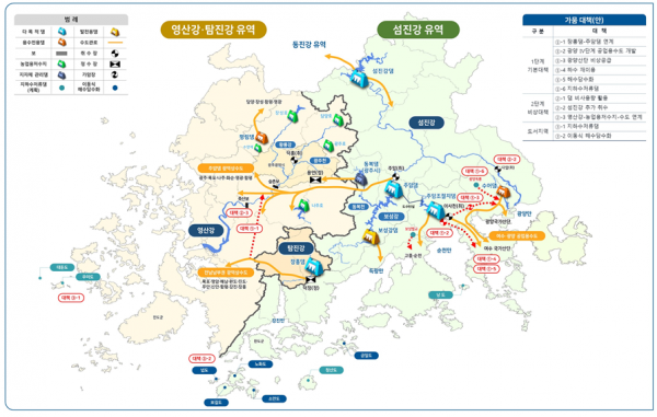 ‘2단계 비상대책’은 댐 비상용량 활용, 섬진강 추가 취수, 영산강-농업용저수지-수도 연계 등으로 구성됐으며 주요 내용은 다음과 같다.