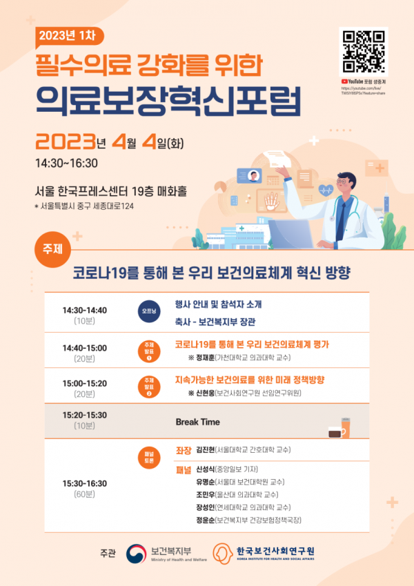 보건복지부는‘제1차 의료보장혁신포럼’을 4월 4일 오후 2시 30분 서울 한국프레스센터에서 개최했다.