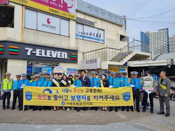 이번 캠페인은 거제시 녹색어머니회 주관으로 거제시, 거제경찰서 거제시 모범운전자회 등 관계 기관 및 유관단체에서 참여했다.