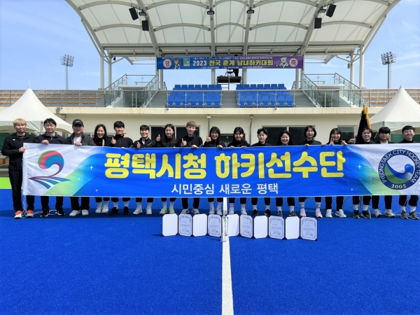 [금요저널] 평택시청 하키팀이 지난 3월 27일부터 4월 4일까지 강원도 동해시 동해썬라이즈 국제하키경기장에서 열린 2023 전국 춘계 남녀하키대회에서 우승을 차지했다.