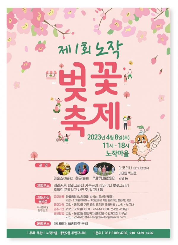[금요저널] 화성시 노작마을과 동탄2동 주민자치회가 8일 화성시 반송동 노작마을 곳곳에서 ‘제1회 노작 벚꽃축제’를 개최한다.