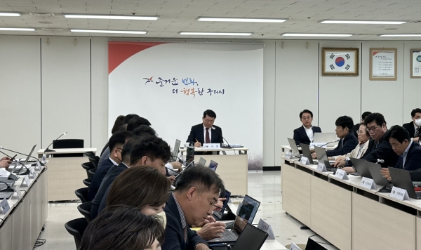 [금요저널] 구리시는 지난 4일 11시 구리시청 상황실에서 백경현 구리시장을 비롯한 관계 공무원과 수행업체 등이 참석한 가운데 ‘구리시 행정데이터 공유 및 활용시스템 구축사업’ 완료보고회를 개최했다.