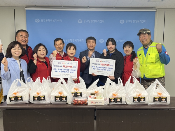 김병선 동구동장은 “동구동 취약계층가구에 치킨선물세트를 직접 배달해주시고 후원해주셔서 진심으로 감사드린다”며 “동에서도 취약계층 가구를 위한 다양한 복지서비스를 제공하는데 더욱 힘쓰겠다”고 전했다.