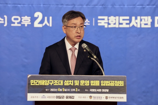[금요저널] 해양경찰청은 이달곤 국민의힘 의원과 윤재갑 더불어민주당 의원이 공동주최하고 해양경찰청이 주관하는 ‘민간해양구조대 설치 및 운영에 관한 법률’ 제정을 위한 입법공청회를 4월 5일 오후 2시에 국회도서관 대강당에서 개최했다고 밝혔다.