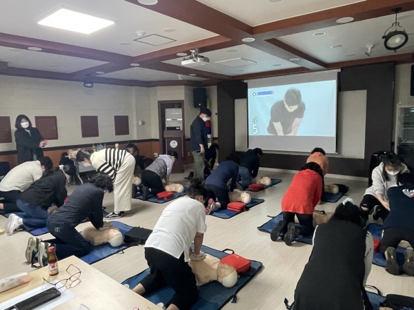 ‘심폐소생술 및 자동심장충격기 사용법, 심폐소생술 실습’ 등의 순으로 교육용 마네킹을 활용했다.