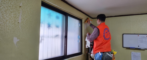 이날 봉사에는 센터 직원 및 봉사자 등 총 10여명이 참여해 깨끗한 도배지로 보수공사를 하며 노인들이 이용하는 경로당의 위생 환경을 개선하고 쾌적한 환경을 조성했다.
