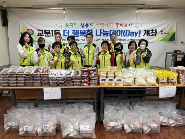 한편 교문1동에서는 후원자 발굴 활동과 먹거리 지원이 필요한 중장년 1인 가구에 밑반찬을 지원하는‘행복드림냉장고’, 독거어르신 안부 확인을 위한 ‘따르릉~똑똑똑’등 다양한 복지사업을 추진하고 있다.