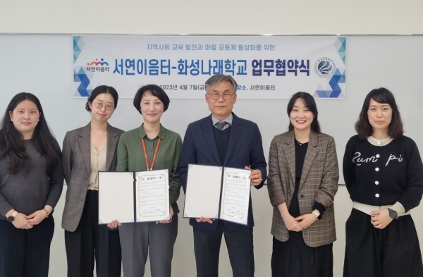 [금요저널] 화성시인재육성재단 서연이음터와 화성나래학교가 4월 7일 서연이음터에서 지역사회 교육 발전과 마을교육공동체 활성화를 위한 업무협약을 체결했다.