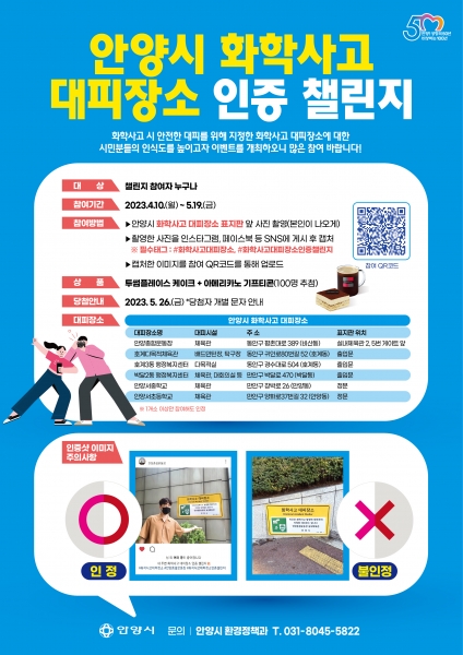 [금요저널] 안양시가 10일부터 다음달 19일까지 ‘화학사고 대피장소 인증 챌린지’를 진행한다.