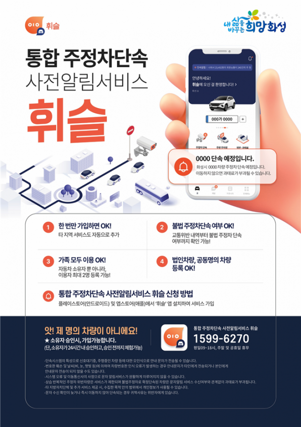 화성시, 통합주정차단속 사전알림 ‘휘슬’서비스 개시