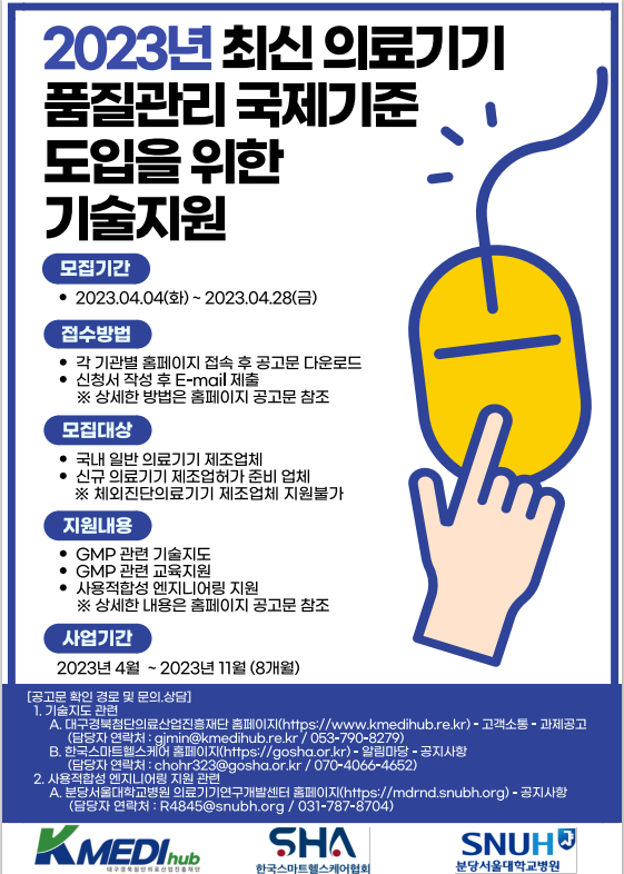 일반 의료기기 제조업체 기술지원에 관한 자세한 사항은 대구경북첨단의료산업진흥재단과 한국스마트헬스케어 누리집에서 확인할 수 있으며 소프트웨어 의료기기 기술지원에 관한 사항은 한국산업기술시험원과 한국디지털헬스산업협회 누리집에서 확인할 수 있다.