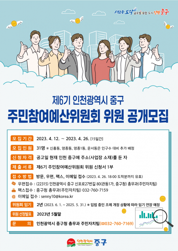 인천 중구, 주민 주권 실현 ‘제6기 주민참여예산위원회’ 위원 모집
