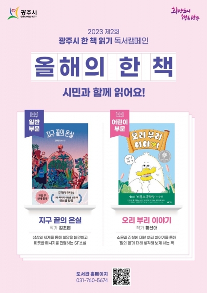 [금요저널] 광주시는 2023년 제2회 광주시 한 책 읽기 독서캠페인, ‘올해의 한 책’으로 김초엽 작가의 ‘지구 끝의 온실’, 황선애 작가의 ‘오리 부리 이야기’를 선정했다.
