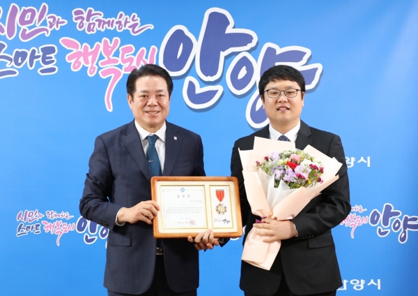 안양시는 13일 시청 접견실에서 안양시민인 장대언씨에게 안전문화운동 유공 표창을 수여했다고 밝혔다.