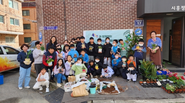 [금요저널] 시흥시 아이누리지역아동센터는 지난 12일 식목일 행사의 일환으로 가족과 함께하는 빈 화분 재사용 캠페인을 진행했다.