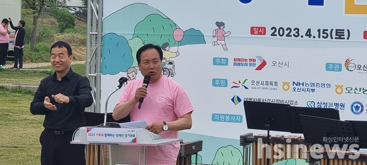 이날 걷기대회에 앞서 이권재 오산시장을 포함해서 안민석 국회의원과 도의원, 오산시의회 의원들도 거의 참석해 자리를 빛냈으며 장애인 체육회관계자는 물론 오산시 체육회관계자와 오산 한신대학교 특수체육학과 학생들이 봉사에 앞장서서 흐린 날씨 속에서도 따스함을 연출했다.