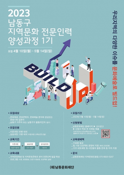 [금요저널] 남동문화재단은 남동구 지역문화 전문인력 양성과정 1기 ‘빌드업’교육생을 5월 14일까지 모집한다고 17일 밝혔다.