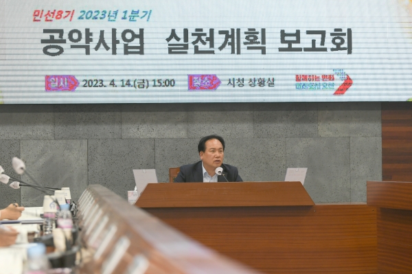[금요저널] 오산시는 14일 공약사업에 대한 실천계획 이행을 위해 1분기 보고회를 열었다고 밝혔다.