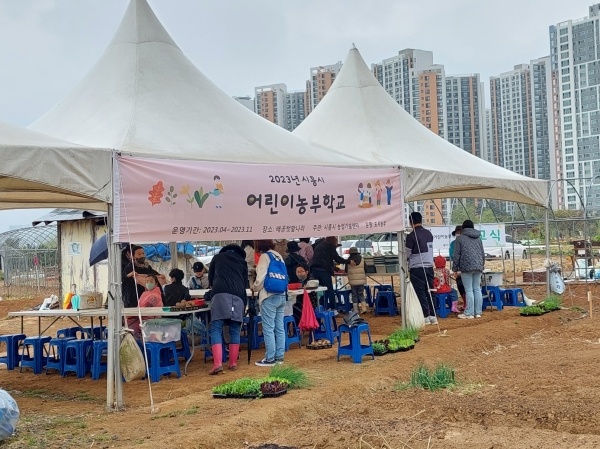 [금요저널] 시흥시는 지난 15일 배곧텃밭나라에서 도심 어린이들에게 농업과 자연의 소중함을 일깨워주는 ‘2023년 시흥시 어린이 농부학교’의 첫 수업을 열었다.