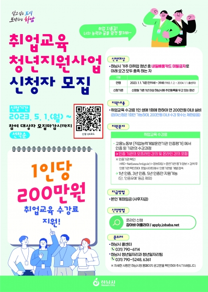 [금요저널] 하남시가 올해부터 취업을 준비하는 청년들이 구직활동에 전념할 수 있도록 관내 미취업 청년 150명에게 1인당 연 200만원의 취업교육 수강료를 지원하는 ‘취업교육 청년지원’ 사업에 나선다.